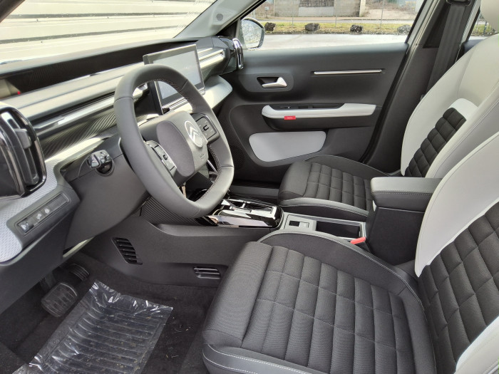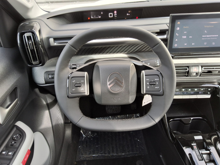1 Prise USB type-C (charge rapide 3A) sur la console centrale1 Prise USB type-C (charge standard et data) sur la planche de bord2 Prises USB type-C (charge rapide 3A) en rang 26 Airbags (frontaux, lateraux AV et rideaux)ABS, ESPAFU, REFAide au demarrage en penteAide au stationnement ARAide au stationnement AVAllumage automatique des feux de croisementAvertisseur sonore monotonBanquette AR avec dossier fractionnable 2/3 et 1/3Barres de toit Noir BrillantBoite automatique 6 rapportsBoitier telematique: Appel d'urgence et Citroen AssistanceCamera de reculCentre de roue noir avec logoCitroen Head up Display (affichage tete haute couleur) - TFTClimatisation automatiqueCondamnation centralisee avec PLIPConsole centrale haute avec accoudoir et rangement fermeCoques de retroviseurs exterieurs Noir BrillantDecors exterieurs Noir BrillantDetection de sous-gonflageDirection assisteeEclairage d'accompagnement et d'accueilEclairage d'ambiance monochromatiqueEcran central 10,25 " tactile: Apple CarPlay et Android Auto sans filElargisseurs d'ailes Noir MatEssuie-vitre AV automatique (capteur de pluie)Feux AR 3D a LEDFeux diurnes a LEDFixations ISOFIX sur les deux places lateralesFrein de stationnement electriqueGarnissage Maille Hello Noire /Toile enduite Gris clairJantes alliage 17" ARAGONITE DiamanteesKit de depannage provisoire de pneumatiquesLeve-vitres AR electriques (descente sequentielle)Leve-vitres AV electriques (descente sequentielle)Navigation 3D sur ecran central 10,25" tactileOrdinateur de bordPack SafetyPlafonnier a LEDPlancher de coffre escamotablePoignees de maintien au rang 2Poignees de portes exterieures Noir BrillantPrise 12 V a l'AR de console centraleProjecteurs LEDRecharge sans fil pour smartphone (puissance 15W)Repetiteur de clignotant dans le retroviseur a LEDRetroviseur interieur electrochromeRetroviseurs exterieurs electriquesRetroviseurs exterieurs rabattables electriquement et degivrantsSabots AV et ARSiege conducteur reglable en hauteurSieges Advanced ComfortStation d'accueil SmartphoneSuspension Citroen Advanced ComfortSysteme de surveillance d'angle mortTemoin de non-bouclage des ceintures de securite conducteur et passagersVerrouillage centraliseVitres et lunette AR surteinteesVolant Gaine avec decor chromeVolant reglable en hauteur et en profondeur