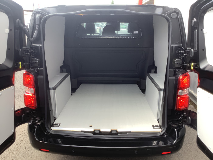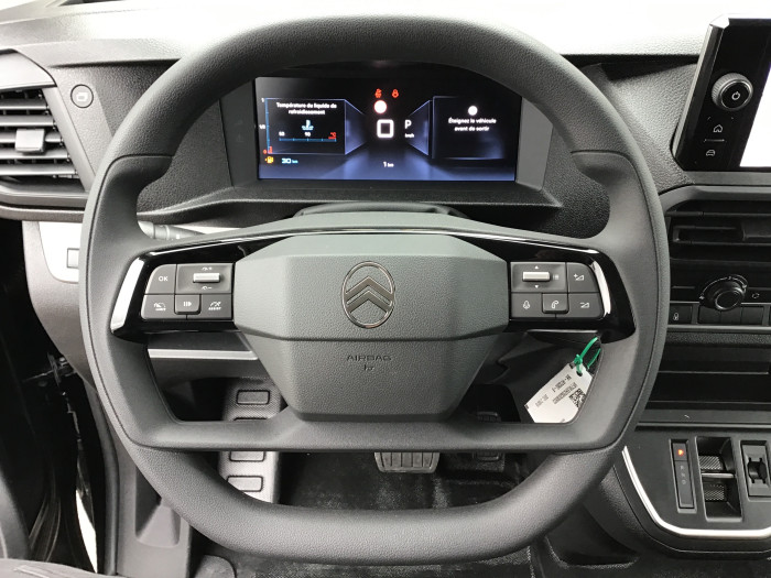 ABS, AFU, ASR et ESP avec aide au demarrage en penteAide au stationnement ARAirbags frontaux conducteur et passagerAirbags lateraux AV tete-thorax en rang 1 et airbags rideau pour teteAllumage automatique des feux de croisement et des essuie-vitres AVAnneaux d'arrimage 6 repartis uniformement sur la zone de chargementBanquette fixe 3 places en rang 2 avec appui-tete reglables et 2 accoudoirs,Boitier transformation Carrossier (BSG-TC)Boucliers AV/AR teintes masseCharge utile majoreeClimatisation manuelle regulee en temperatureCloison pleine PVC avec vitre plexiglassCombine numerique LCD noir et blancCommandes radio au volantConnectivite via BTA (appel d'urgence et d'assistance localisees + offres services connectes)Detection de sous-gonflage indirecteGarnitures pavillon habitacle en rang 2Jeu de clefs: 2 plips HF 3 boutons avec fonction selectiviteLeve-vitres AV electriques impulsionnelsPack SecuritePanneaux de garniture de type Isorel en rang 2 et 3Pare-brise feuillete acoustique athermiquePorte laterale coulissante droitePortes AR battantes 50/50 tolees a ouverture a 180° avec verrou sur porte gauche uniquementPrise 12 V en rang 2Projecteurs H15 avec feux diurnes a lampesRegulateur - limiteur de vitesseRetroviseur interieur prismatiqueRetroviseurs exterieurs electriques et degivrantsRevetement de sol TPO dans l'habitacleSecurite enfants mecaniqueSellerie Tissu bi-ton noir-grisSiege conducteur individuel avec appui-tete reglable en hauteur et avec accoudoirVitres laterales fixes en rang 2Volant reglable en hauteur et en profondeur