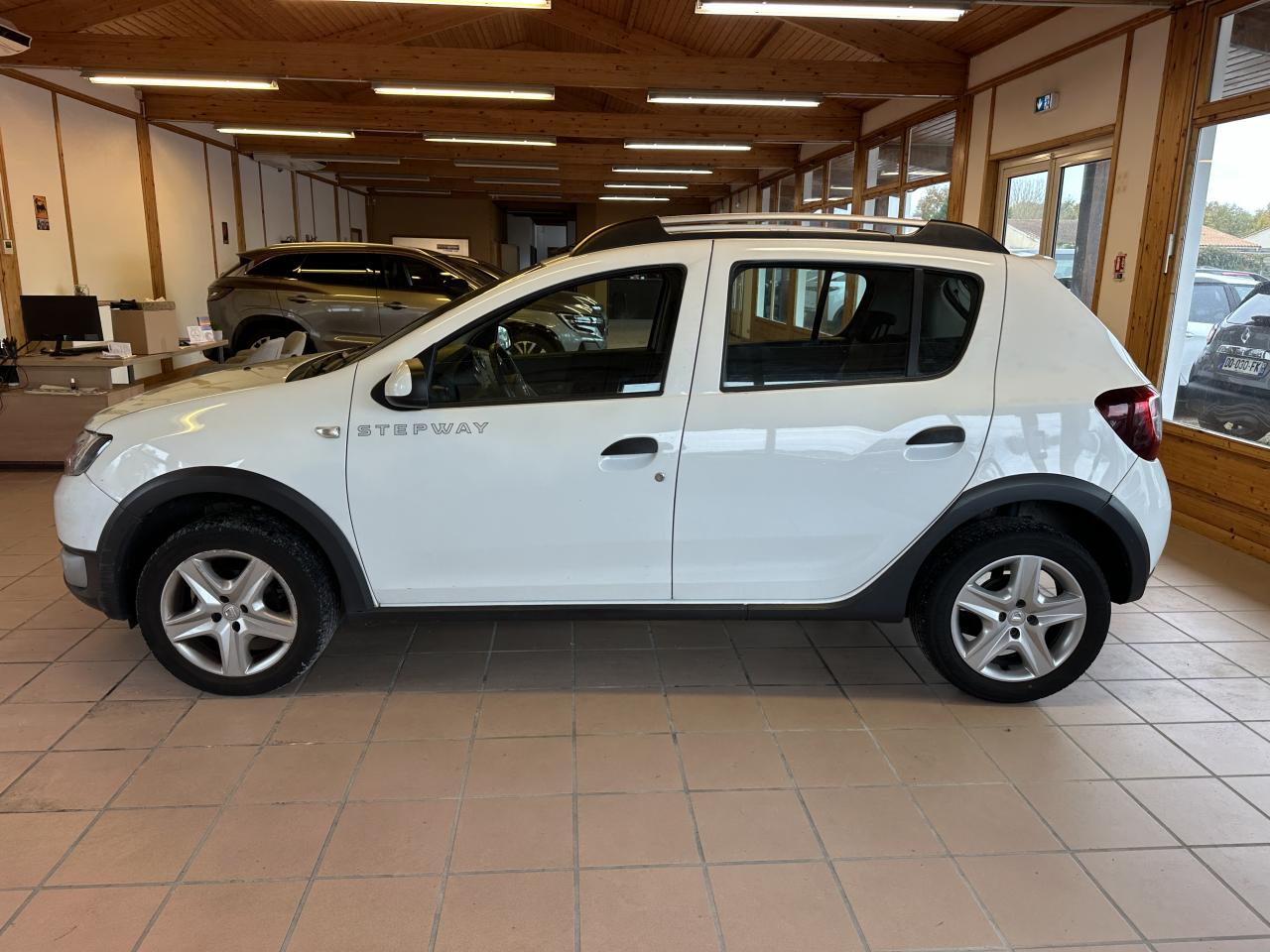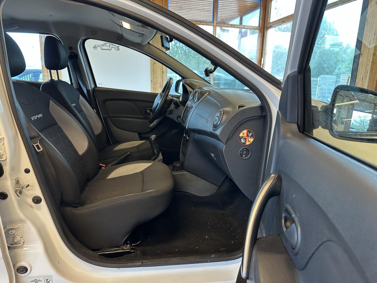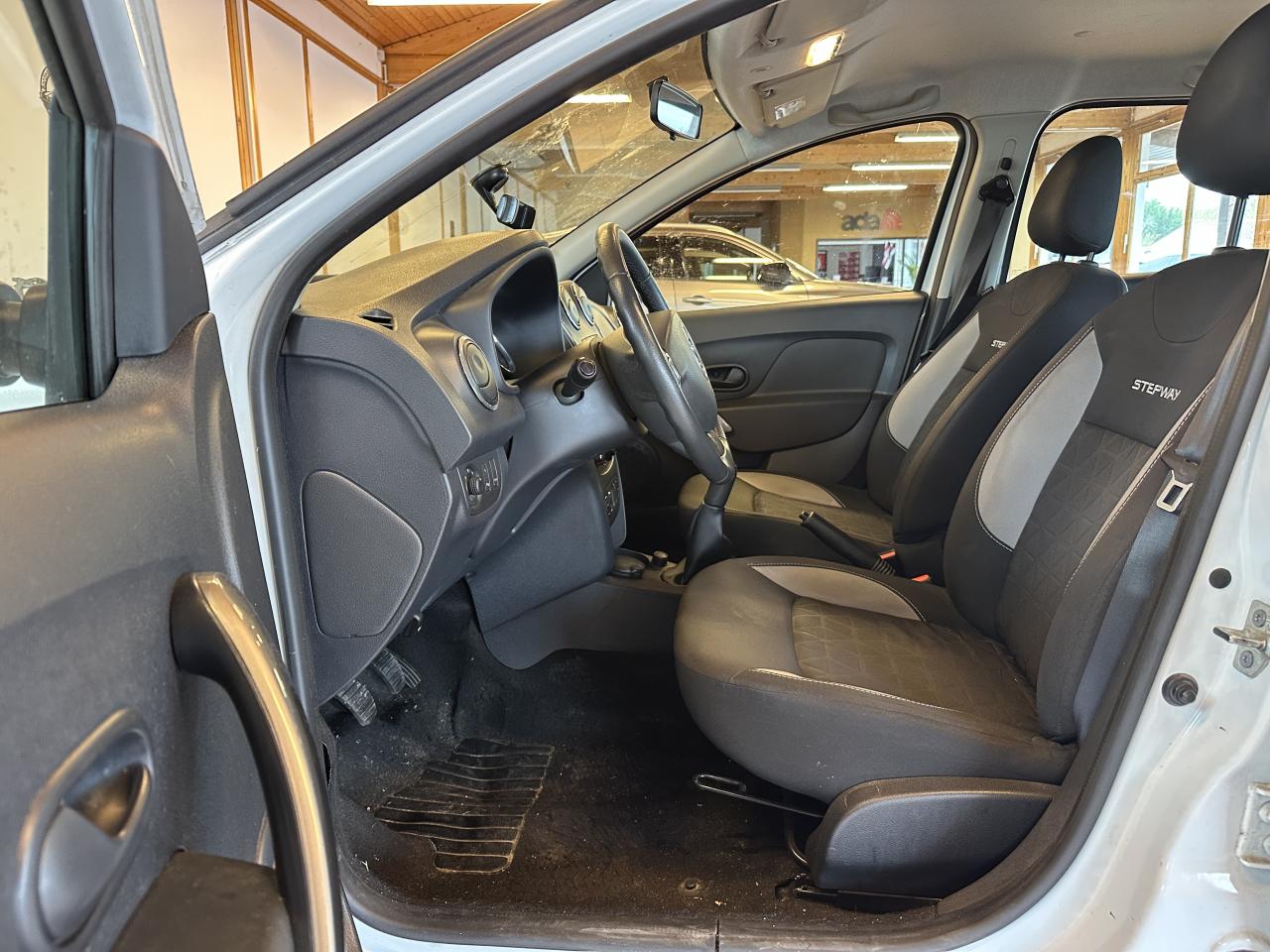 2 haut-parleurs avant3 appuis-tête arrière (1 central "Virgule", 2 latéraux "Ballon")Ailettes de calandre noiresAirbag frontal conducteurAirbag frontal passager déconnectableAirbags latéraux avant tête/thoraxAlerte visuelle et sonore du non bouclage des ceintures de sécurité conducteurAntidémarrage codéArches de roue protégéesBanquette arrière rabattable et fractionnable 1/3-2/3Boîte à gants ferméeBoucliers avant et arrière ton carrosserieCerclage autour du logo chrome du volant chroméCerclages aérateurs chroméCerclages des compteurs du tableau de bord chroméChauffage et ventilation à 4 vitessesCondamnation centralisée des portes à distanceDacia Plug & Radio : radio CD MP3, prises jack et USB, téléphonie Bluetooth avec satellite de commandes au volantDirection assistéeEclairage du coffreEclairage plafonnier avant centralEnjoliveur façade centrale gris fumé métal brillantFeux de jourHarmonie intérieure carbone foncéInsert sur le volant gris fumé métal brillantJantes 16" spécifiques avec enjoliveur OasisKit anti-crevaisonLève-vitres avant électriquesLunette arrière dégivrante avec essuie-glaceMasques de feux noirs avantPack Look StepwayPanneaux de porte carbone foncéPeinture métalliséePoignée de portes extérieures noiresPoignée latérale de maintien passager avantPoignées de porte intérieures noiresPrise 12VProjecteurs antibrouillardRétroviseurs extérieurs à réglage manuelRétroviseurs extérieurs couleur carrosserieSellerie spécifique StepwaySystème de contrôle de trajectoire (ESC) et fonction antipatinage (ASR)Système de fixation Isofix pour siège enfant aux places arrière latéralesTémoin de portes non ferméesZone de dépose en haut de planche ouvert