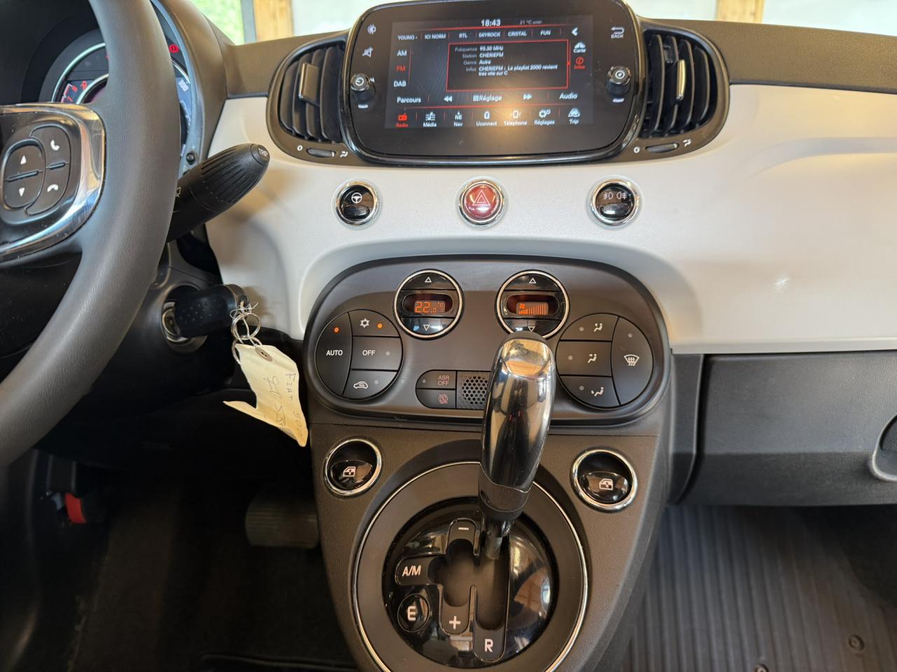 ABS – antiblocage des roues avec répartiteur de freinage EBDAir conditionnéAirbag Fiat de genouxAirbags fiat conducteur et passagerAirbags Fiat de toitAirbags Fiat latéraux avantAppuie-tête à l'avant, réglables en hauteurAssistance au freinage d'urgenceAttaches IsofixBaguette de vitres latérales chroméesBanquette arrière fractionnable 50/50Banquette arrière rabattable avec appui-têteCapote à ouverture éléctrique et lunette arrière en verre à dégivrage éléctriqueCombiné de bord à affichage numérique TFT 7''Condamnation automatique des ouvrants en roulantCondamnation centralisée à distanceDirection assistée Dualdrive avec fonction"City"Dispositif d'éclairage ‘'Follow me home''Eclairage du coffreESP - contrôle électronique de stabilité avec “Hill Holder"Feux de jour à LEDJantes alliage de 16'' SpiderKit ChromeLame avant chromée sous logo FiatLevier de vitesses effet chroméLimiteur de vitessePare-chocs couleur carrosseriePoignées de porte chroméesPoignées de porte intérieures chroméesProjecteurs antibrouillardRadar de reculRégulateur de vitesseRétroviseurs extérieurs à réglage électrique et sonde de température extérieureRétroviseurs extérieurs couleur carrosserieSellerie Tissu matelasséSeuils de portesSiège conducteur réglable en hauteurStart/Stop : Système d'extinction/allumage du moteur lors de courts arrêtsSystème Link : intégration Apple CarPlay et compatibilité Android AutoSystème Uconnect 7” HD LIVE (Dual Tuner/USB/Bluetooth)Tapis de solVitres avant électriquesVolant éco-cuir avec commandes de l'autoradioVolant réglable en hauteur