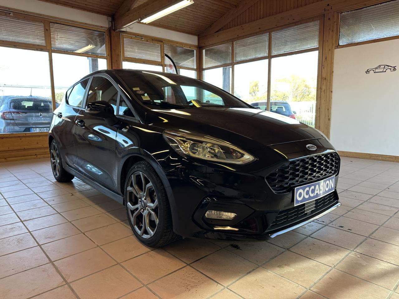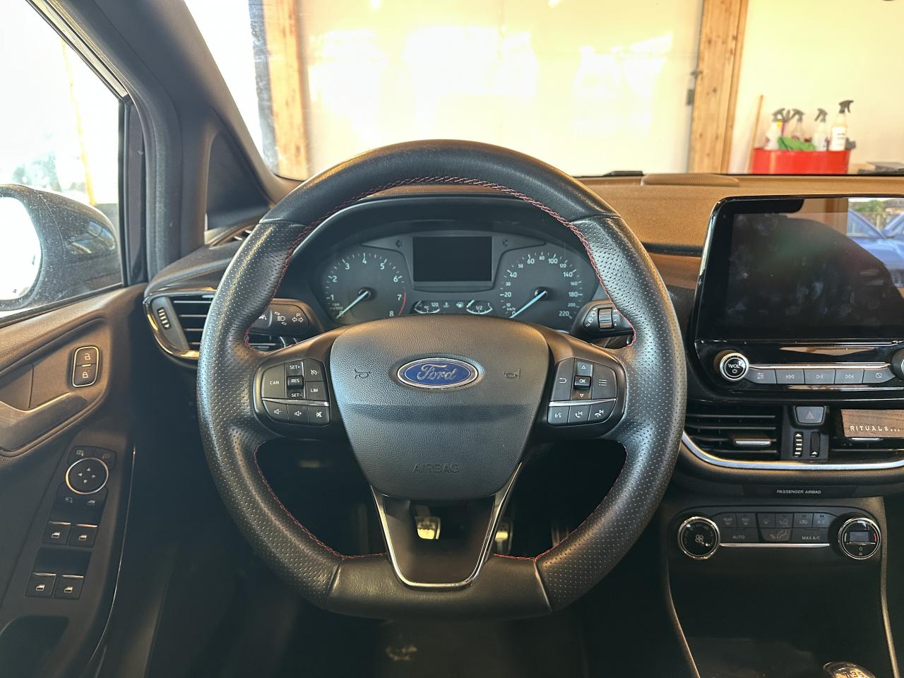 2 Fixations Isofix à l'arrière3 appuie-tête arrière5 ceintures de sécurité 3 pointsAide au démarrage en côteAide au maintien dans la file (LKA)Airbags frontaux, latéraux (thorax) et rideauxAlerte de franchissement de ligneAlerte de non-bouclage de la ceinture de sécurité à toutes les placesAllumage automatique des essuie-glacesAllumage automatique des projecteursBadge ST-Line sur les ailes avantBanquette arrière rabattable 40/60Becquet arrière couleur carrosserieBouton de démarrage Ford Power - démarrage du moteur sans cléCeintures de sécurité avant réglables en hauteurCiel de toit noirClimatisation automatiqueConsole centrale avec accoudoir et rangement intégréContrôle dynamique de la trajectoire (ESP)Désactivation de l'airbag du passager avantDirection assistée électriqueDisques de frein arrièreEclairage d'ambiance intérieurFeux de jour et feux arrière à LEDFord SYNC avec écran tactile 8", 2 ports USB, compatible AppLink, Apple CarPlay et Android autoGrille de calandre ST-LineIndicateur de changement de vitessesJantes alliage 17" 5 branches Y ST-Line et pneus 205/45R17Kit carrosserie ST-LineKit de réparation pneumatiqueLève-vitres arrière électriquesLevier de frein à main en cuirLevier de vitesse spécifique ST-LineOrdinateur de bord et EcoModePack ParkingPare-chocs avant et arrière spécifiques ST-LinePédalier sport en aluminiumPoignées de portes couleur carrosserieRéglage en hauteur et lombaire des sièges avantRégulateur et limiteur de vitesseRétroviseur intérieur électrochromeRétroviseurs extérieurs électriques couleur carrosserie dégivrantSeuil de porte ST-LineSièges avant sportSortie d'échappement chroméeSuspension sportSystème de surveillance de pression des pneusSystème Keyfree (ouverture et démarrage mains libres)Système MyKeySystème Stop&Start (arrêt/redémarrage auto du moteur)Tapis de sol avant et arrière ST-LineTrappe à carburant Ford EasyFuelVerrouillage centralisé à distanceVitres arrières surteintéesVitres AV électriques à impulsion haut/basVolant gainé de cuir à méplat 3 branches ST-Line