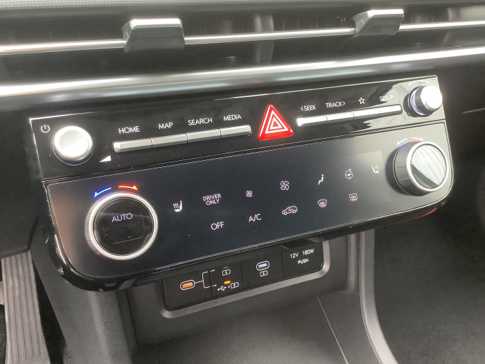 Accoudoir AVAccoudoir central AR avec porte-gobeletsAccoudoirs AV et central AR avec porte-gobeletsAide au demarrage en coteAide au stationnement ARAide au stationnement AVAirbag central AVAirbag passager deconnectableAirbags frontaux conducteur et passagerAirbags lateraux AVAirbags rideaux AV/ARAlarme perimetriqueAlerte de circulation transversale AR avec fonction freinageAlerte de presence de passager AR avec capteur ultrasonAllumage automatique des feuxAntenne de toit type requinAppui-tetes AV reglables en hauteur et ajustablesAppuie-tetes AR reglables en hauteurAppuie-tetes AV/AR reglables en hauteurAssistance a la sortie du vehiculeAssistance active a la conduite sur autorouteAssistance active au maintien de voieAssistance active au suivi de voieCalandre chromee "Parametric Dynamics"Camera de recul avec lignes de guidage dynamiquesCapteur de desembuage automatique du pare-briseCapteur de pluieCeintures AV reglables en hauteur avec pretensionneursChargeur sans fil pour telephone compatibleClignotants AV a LEDClimatisation automatique bi-zone avec desembuage automatiqueCompatibilite Apple CarPlay et Android Auto - connexion sans filCompteurs numeriques 12,3"Connexion BluetoothConsole centrale avec bac de rangement sous l'accoudoir AVControle de la pression des pneumatiquesControle de trajectoire electronique ESP avec gestion de stabilite pour remorqueControle de vitesse en descenteDetection de fatigue du conducteurDirection assistee electrique asservie a la vitesseDossier AR rabattable 40/20/40 a distance avec commande depuis le coffreDrive ModeeCall : appel d'urgence automatique aux services de secours avec geolocalisation du vehiculeEclairage additionnel en virageEclairage d'ambiance interieur a LED personnalisableFeux AR a LED avec bandeau lumineuxFeux AV bi-LEDFeux de jour et de position AV a LED a effet miroirFeux de route intelligentsFilet de coffreFiltre a particulesFrein de parking electrique avec fonction auto-holdFreinage anti multi-collisionsFreinage d'urgence autonome avec fonction intersectionsFreinage d'urgence autonome avec reconnaissance pietons et cyclistesFreinage regeneratif intelligentFreinage regeneratif intelligent modulable via palettes au volantJantes alliage 18"Jonc de vitres chromeLimiteur de vitesse intelligentMiroirs de courtoisie eclairesMises a jour sans fil a distance OTAPalettes de freinage regeneratif modulable au volantPare-brise avec film acoustiquePare-brise et vitres AV athermiquesPare-soleils integres dans les portes ARPeinture solidePoches aumonieres au dos des sieges AVPoignees de portes exterieures ton carroseriePoignees de portes interieures grain metalPorte-gobelets AV/ARPrise USB type C AVPrises 12V (AV et coffre) et USB AV/ARProtections AV/AR grain metalProtections de seuils de portes grain metalRails de toitReception radio numerique terrestre (DAB)Reconnaissance des panneaux de limitation de vitesseRegulateur de vitesse adaptatif intelligent (jusqu'a l'arret)Retroviseurs electriques degivrants, rabattables electriquement avec clignotants integresRetroviseurs exterieurs ton carrosserieRetroviseurs interieur jour/nuit automatiqueServices connectes BlueLinkSiege conducteur avec support lombaire electriqueSiege passager AV reglable en hauteurSieges AR inclinablesSieges AV chauffantsSieges AV reglables en hauteurSurveillance des angles morts avec assistance active au changement de voieSysteme audio RDS, MP3, 4 HPs, 2 tweetersSysteme d'acces mains-libres et demarrage sans cleSysteme de navigation Europe avec programme de mise a jour de la cartographieSysteme multimedia avec ecran couleur tactile 12,3" avec reconnaissance vocale en ligneTransmission a commande electriqueVerrouillage automatique des portes en roulantVerrouillage centralise a distanceVide-poches dans portes AV/ARVitres AR surteinteesVitres AV/AR electriques sequentiellesVolant chauffantVolant et pommeau de levier de vitesses gaines de cuirVolant reglable en hauteur et en profondeur