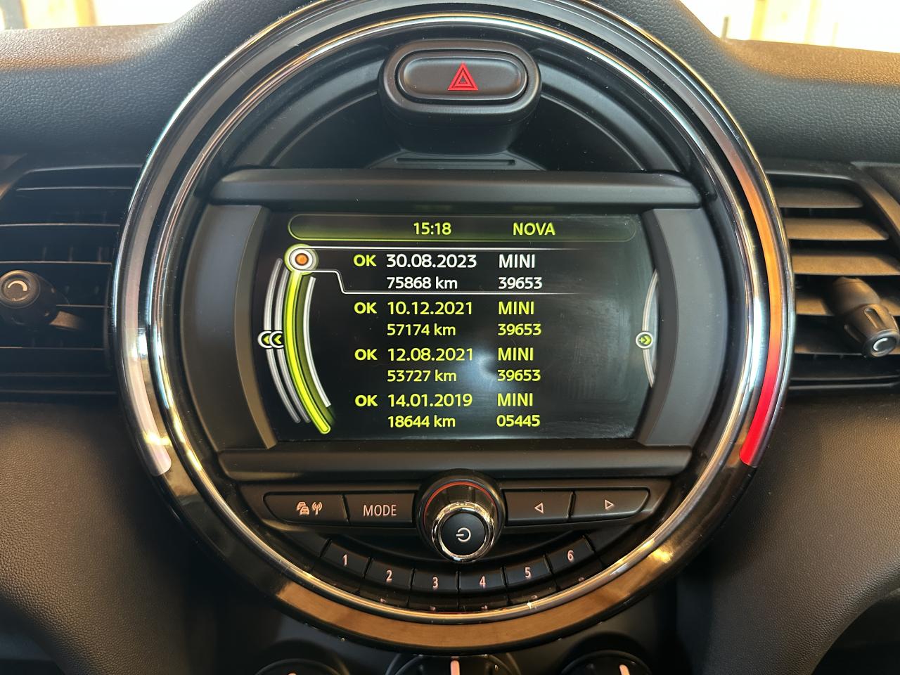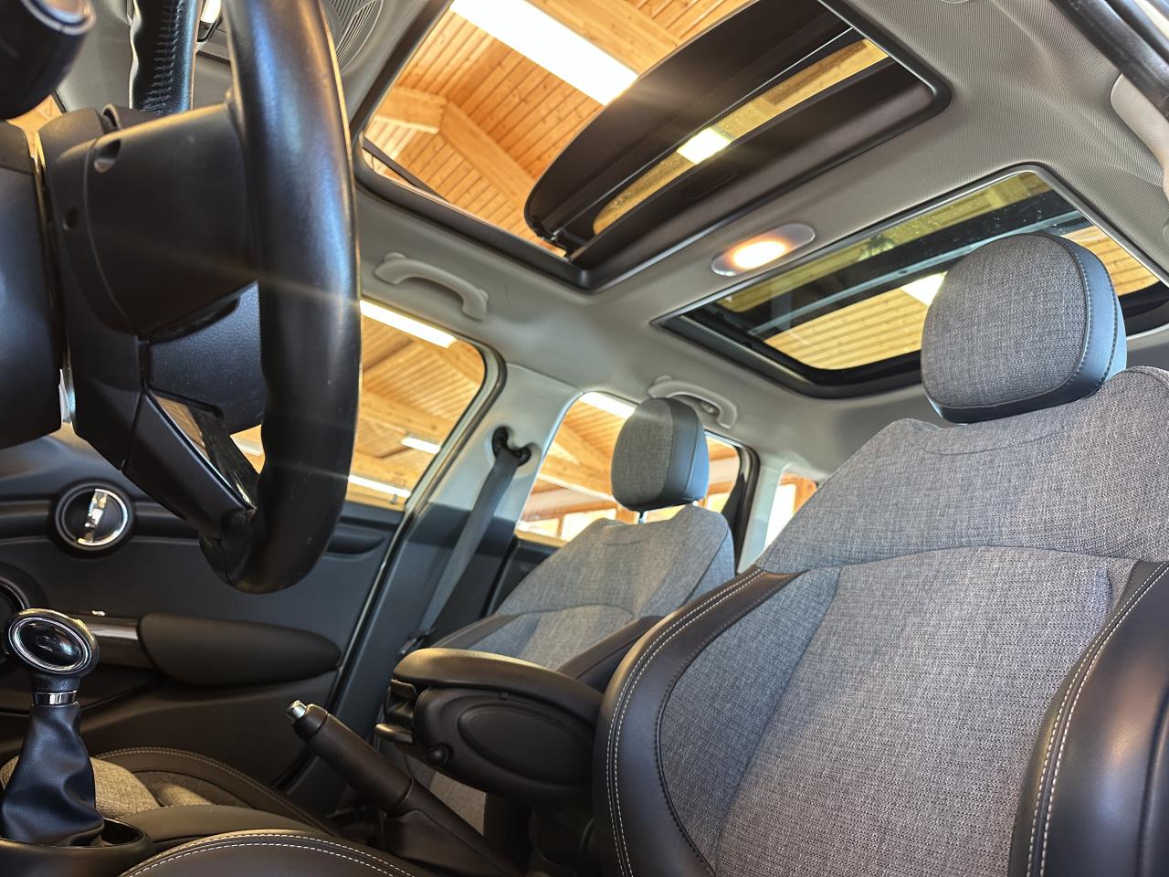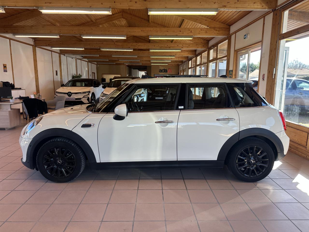 2 clés radiocommandées4 appuie-tête réglables en hauteur6 Airbags : 2 frontaux, 2 latéraux et 2 rideaux gonflables latérauxABS avec aide au freinage d'urgenceAccoudoir central avant inclinable en 4 positionsAffichage en temps réel les besoins de maintenance du véhiculeAutoradio MINI AM/FM avec prises AUX-IN et port USBAutoradio MINI Visual Boost avec écran 6,5”Badge Shoreditch sur la partie droite de la console centraleBadge Shoreditch sur les montants des portièresBaguettes de seuil de porte avec inscription de la motorisation façon métalliqueBandes décorative Sport Shoreditch spécifiquesBanquette arrière : trois places, rabattable 40/60Becquet arrière de toitBoîte de vitesses automatiqueCalandre au contour chromé avec lamelles noiresCerclage des buses d'aération chroméesClignotants blancsClimatisation manuelleContrôle Dynamique de la Stabilité DSC, y compris assistant de démarrage en côteDétecteur de pluie et allumage automatique des projecteursEclairage d'accompagnement "Follow me Home"Ecrous antivolFonction sécurité piéton avec capot actifFonction Start & Stop et démarrage sans cléIndicateur de crevaisonJantes en alliage 16'' design "Victory Spoke" 6,5 J x 16 / pneumatiques 195/55 R 16Ordinateur de bordPare-chocs avant et arrière couleur carrosseriePoignées de portes chroméesPoignées de portes intérieures chroméesPorte-boissons à l'avant (x2)Prise 12V sous la console centraleProjecteurs avant et feux arrière au contour chroméRégulateur de vitesse avec fonction freinageRétroviseurs extérieurs à réglage électriqueRétroviseurs extérieurs couleur carrosserieRétroviseurs extérieurs rabattables électriquementRadars de stationnement AV et ARSiège conducteur réglable en hauteurSièges avant sport avec Sellerie tissu/simili cuir "Black Pearl" Carbon BlackSortie d'échappement arrière côté gaucheSurveillance de pression des pneumatiquesSystème de haut-parleurs HiFi Harman/kardonSystème de navigation MINI avec écran 6,5''Système mains-libres Bluetooth avec Snap-in - niveau 2Teinte d'habitacle Carbon BlackToit couleur carrosserieToit ouvrant panoramique en verreTouches multifonctions sur le volantVolant Sport gainé cuir