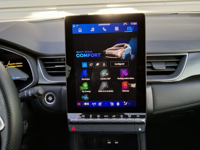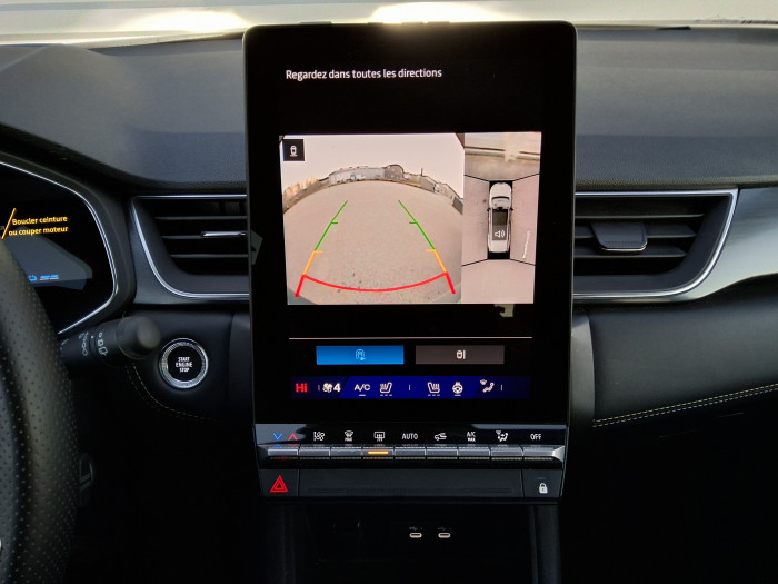 Aide au freinage d'urgence (A.F.U.)Airbag passager deconnectableAirbags frontaux conducteur et passager adaptatifAirbags lateraux AVAlerte de distance de securiteAlerte detection de fatigueAlerte franchissement de ligne et assistant maintien dans la voieAlerte sortie securisee des occupantsAllumage automatique des essuie-glacesAntenne RequinAntiblocage des roues ABSAppel d'urgenceAppuie-tetes ARAvertisseur d'angle mort et detection AR avec centrage dans la voieAvertisseur de sortie de stationnement en marche AR avec freinage d'urgence automatiqueBanquette AR coulissante et rabattable 1/3 - 2/3Boitier connect AIVCCamera 3D vision 360°Carte "Mains libres"Cartographie StandardCeinture centrale AR 3 pointsChargeur smartphone a inductionClimatisation automatiqueCompartiment de coffreCondamnation centralisee des portesConduite hybride predictiveEclairage AV et AR Full LED Pure VisionFeux AR 3DFeux AR avec signature lumineuse YFeux de stop a LEDFiltre a particulesFrein de parking electrique avec fonction Auto-HoldHayon motorise mains libresIndicateur de changement de vitesseJantes alliage 19'' diamantees PulsarKit de gonflageLeve-vitres AV electriques a impulsionLunette AR chauffanteMiroirs de courtoisie retroeclairesMy Safety switchNotice d'utilisation digitale embarque dans le systeme multimedia du vehiculeParking mains-libresPoignees de portes ton caisseReconnaissance des panneaux de signalisationRegulateur de vitesse adaptatifRegulateur de vitesse adaptatif + centrage dans la voieRenault Multi-senseRepetiteurs lateraux de changement de directionRetroviseur interieur chrome framelessRetroviseurs exterieurs degivrants, reglables et rabattables electriquementSellerie IonicSieges AV a reglage electrique 6 voies et conducteur reglage manuel lombaireSieges AV chauffantsSysteme de controle de trajectoire ESC avec aide au demarrage en coteSysteme de freinage d'urgence avanceSysteme de surveillance de la pression des pneusSysteme ISOFIX (i-Size) aux places laterales AR et passager AVSysteme multimedia openR link 10.4" avecGoogle integreTableau de bord avec ecran numerique et personnalisable 10"Temoin d'oubli de ceinture de securiteVitres laterales et AR surteinteesVolant chauffantVolant tep
