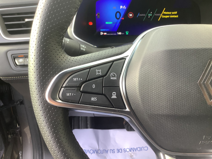 Aide au freinage d'urgence (A.F.U.)Airbag passager deconnectableAirbags frontaux conducteur et passager adaptatifAirbags lateraux AVAlerte de distance de securiteAlerte detection de fatigueAlerte franchissement de ligne et assistant maintien dans la voieAlerte sortie securisee des occupantsAllumage automatique des essuie-glacesAntenne RequinAntiblocage des roues ABSAppel d'urgenceAppuie-tetes ARAvertisseur d'angle mort et detection AR avec centrage dans la voieAvertisseur de sortie de stationnement en marche AR avec freinage d'urgence automatiqueBanquette AR coulissante et rabattable 1/3 - 2/3Boitier connect AIVCCamera 3D vision 360°Carte "Mains libres"Cartographie StandardCeinture centrale AR 3 pointsChargeur smartphone a inductionClimatisation automatiqueCompartiment de coffreCondamnation centralisee des portesConduite hybride predictiveEclairage AV et AR Full LED Pure VisionFeux AR 3DFeux AR avec signature lumineuse YFeux de stop a LEDFiltre a particulesFrein de parking electrique avec fonction Auto-HoldHayon motorise main libreIndicateur de changement de vitesseJantes alliage 19'' diamantees PulsarKit de gonflageLeve-vitres AV electriques a impulsionLunette AR chauffanteMiroirs de courtoisie retroeclairesMy Safety switchNotice d'utilisation digitale embarque dans le systeme multimedia du vehiculeParking mains-libresPoignees de portes ton caisseReconnaissance des panneaux de signalisationRegulateur de vitesse adaptatifRegulateur de vitesse adaptatif + centrage dans la voieRenault Multi-senseRepetiteurs lateraux de changement de directionRetroviseur interieur chrome framelessRetroviseurs exterieurs degivrants, reglables et rabattables electriquementSellerie IonicSieges AV a reglage electrique 6 voies et conducteur reglage manuel lombaireSieges AV chauffantsSysteme de controle de trajectoire ESC avec aide au demarrage en coteSysteme de freinage d'urgence avanceSysteme de surveillance de la pression des pneusSysteme ISOFIX (i-Size) aux places laterales AR et passager AVSysteme multimedia openR link 10.4" avecGoogle integreTableau de bord avec ecran numerique et personnalisable 10"Temoin d'oubli de ceinture de securiteVitres laterales et AR surteinteesVolant chauffantVolant tep