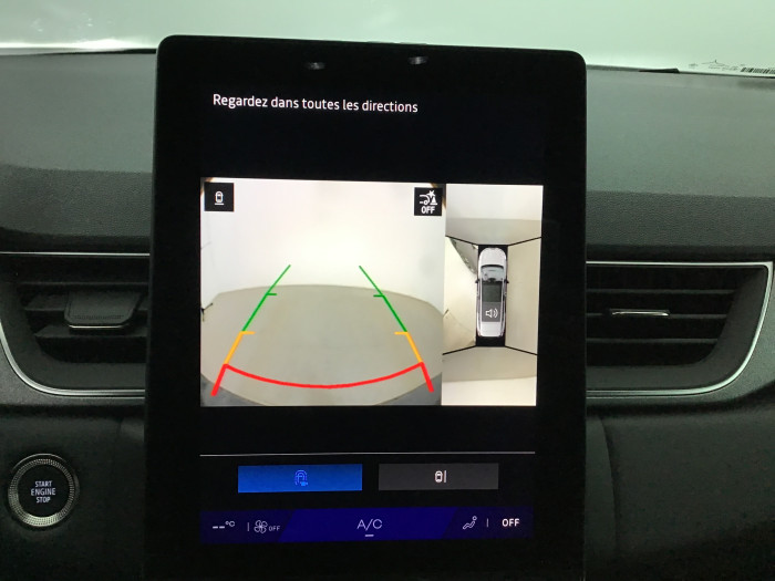 Aide au freinage d'urgence (A.F.U.)Aide au parking AV/AR et lateralAirbag passager deconnectableAirbags frontaux conducteur et passager adaptatifAirbags lateraux AVAlerte de distance de securiteAlerte detection de fatigueAlerte franchissement de ligne et assistant maintien dans la voieAllumage automatique des essuie-glacesAntenne RequinAntiblocage des roues ABSAppel d'urgenceAppuie-tetes ARBanquette AR coulissante et rabattable 1/3 - 2/3Boite de vitesse manuelle 6 rapportsBoitier connect AIVCCamera de reculCarte "Mains libres"Chargeur smartphone a inductionClimatisation automatiqueCondamnation centralisee des portesConsole centrale AV avec accoudoir et rangementControle de la traction (TCS)Direction assisteeEclairage AV et AR Full LED Pure VisionFeux AR 3DFeux AR avec signature lumineuse YFeux de stop a LEDFiltre a particulesFrein de parking electrique avec fonction Auto-HoldHarmonie noireIndicateur de changement de vitesseJantes alliage 18'' diamantees GravityLeve-vitres AV electriques a impulsionLunette AR chauffanteMaintenance connectee, incluse pendant 8 ansMiroirs de courtoisie retroeclairesMise a jour systeme (via firmware over the air FOTA), inclus pendant 5 ansMy Safety switchOuverture du hayon manuellePack connected driving, inclus pendant 5 ansPack controle a distance (via lapplication My Renault), inclus pendant 5 ansPeinture opaque verniePoignees de portes ton caisseReconnaissance des panneaux de signalisationRegulateur de vitesse adaptatifRenault Multi-senseRepetiteurs lateraux de changement de directionRetroviseur interieur chrome framelessRetroviseurs exterieurs degivrants, reglables et rabattables electriquementSellerie TechnoSiege AV reglable en hauteurSysteme de controle de trajectoire ESC avec aide au demarrage en coteSysteme de freinage d'urgence avanceSysteme de surveillance de la pression des pneusSysteme multimedia openR link 10.4" avecGoogle integreTableau de bord avec ecran numerique et personnalisable 10"Temoin d'oubli de ceinture de securiteVitres laterales et AR surteinteesVolant tep